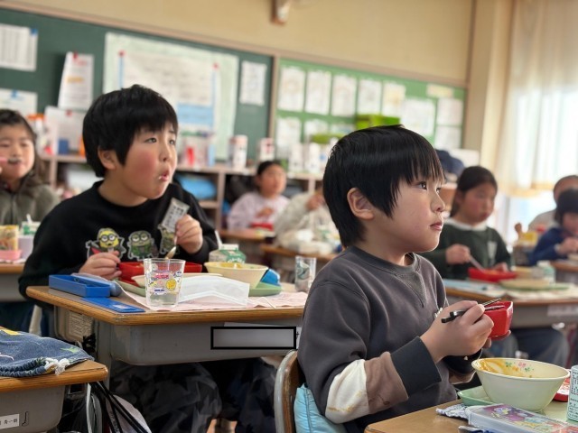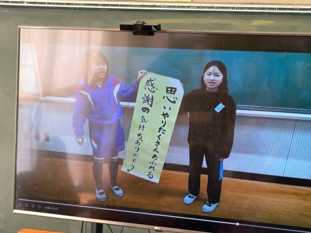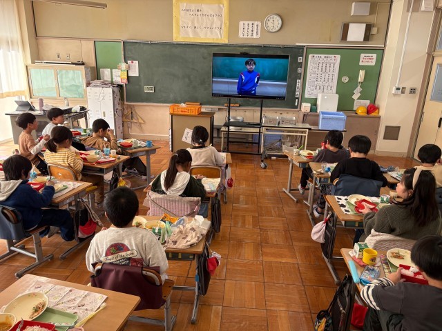 給食の時間では、各学級で話し合ってつくったスローガンが発表されました。