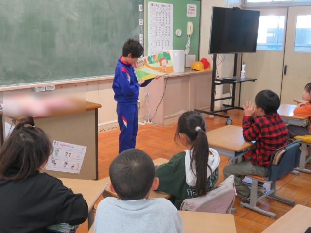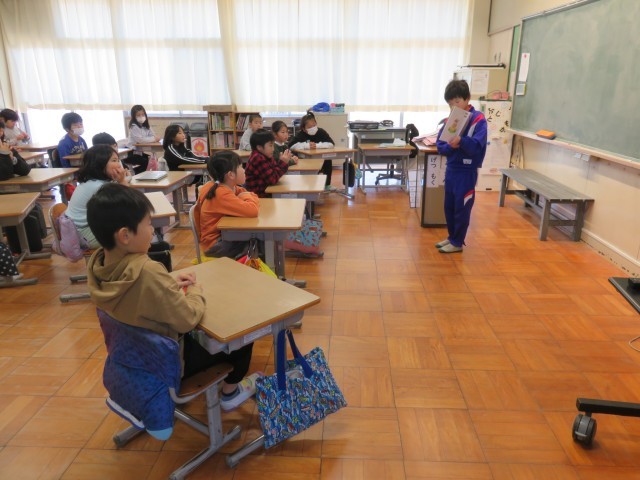 今日は、委員会による読み聞かせの2日目です。2年生の教室に行きました。