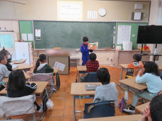 2年生も集中してよく聞いていました。本を読んでもらうと心があたたくなりますね。
