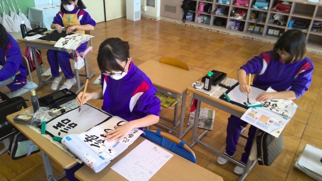 1つ目の文字「夢」が、なかなか難しいようです。お手本をよく見ながら、バランスに気を付けてゆっくり書いていきました。