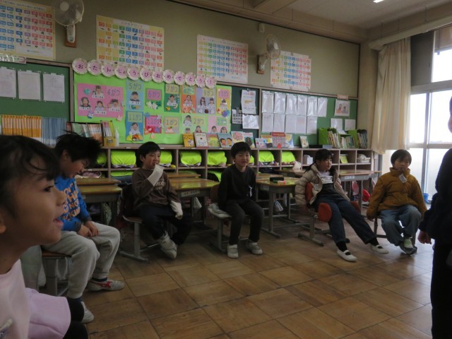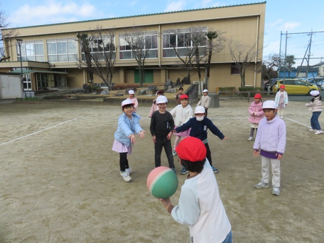 今日は、冬休み前のお楽しみ、クラスレクをしました。レクの遊びは、「中あて」「へびおに」「なんでもバスケット」です。