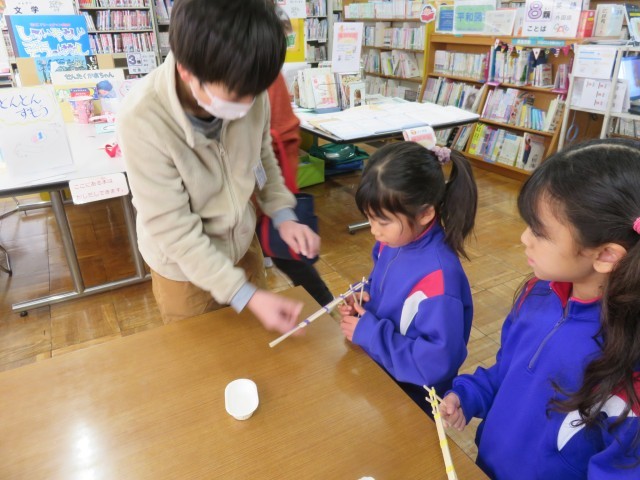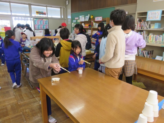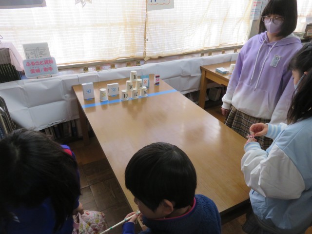 今日は、第1日目。福笑い、射的、とんとん相撲、おみくじなど楽しいコーナーがたくさんあり、来室した児童は、とても楽しそうです。