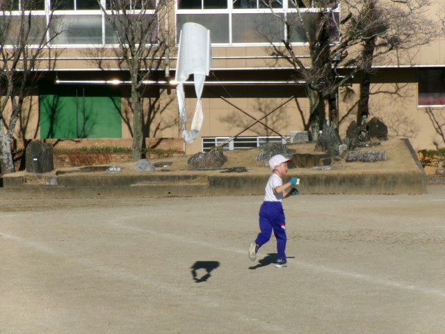 今日はあまり風が吹いていませんでしたが、一年生は力いっぱい走り、自分の凧が空高く上がるのを