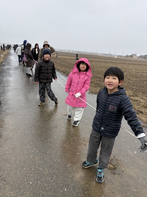 山王キッズも、一緒に大凧上げに力を貸してくれました。寒い中、ありがとう。