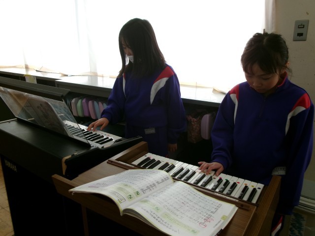 音楽では「茶色の小びん」という曲をパートごとに分かれて練習し、合奏しました。