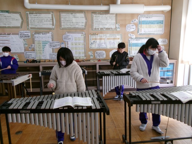 自分のパートの演奏について、リズムの特徴に気を付けたり、音の響かせ方や抑揚を工夫したりしながら合奏することができました。