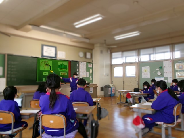 総合的な時間で調べてきたことについて、1グループ目の発表を行いました。