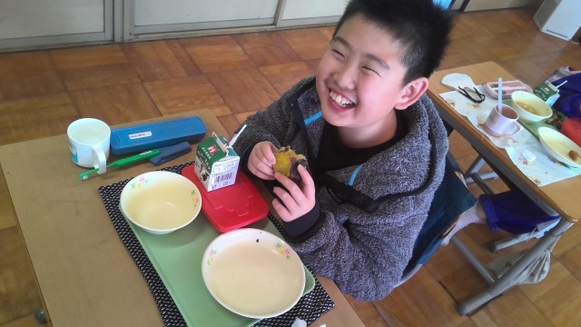 3年生 おいしい焼き芋で笑顔の給食