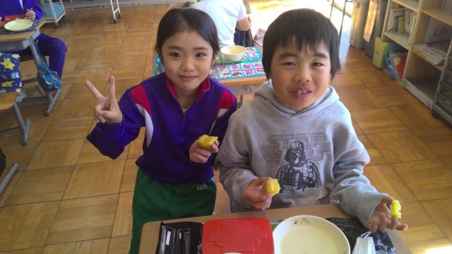 今日は給食に焼き芋が出ることを知っていたので、朝から楽しみにしていました。