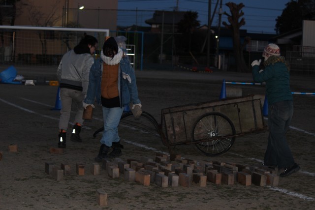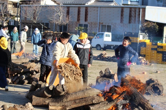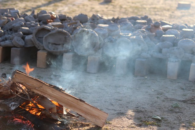 山王の田んぼの土でつくったフラワーポット(植木鉢)を野焼きするために、