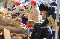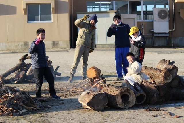 朝早くから、力仕事も手伝ってくれます! 本当にハッピーな瞬間です!