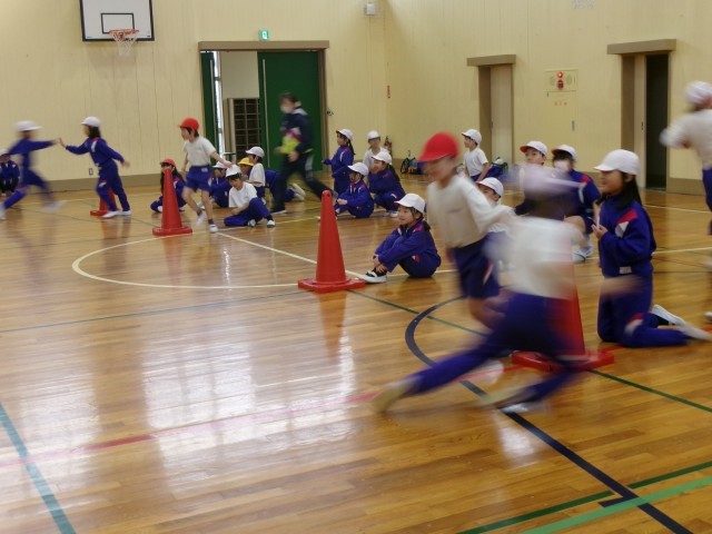 天気が悪く雨のため、校庭での体育ができないため、体育館での体育になりました。