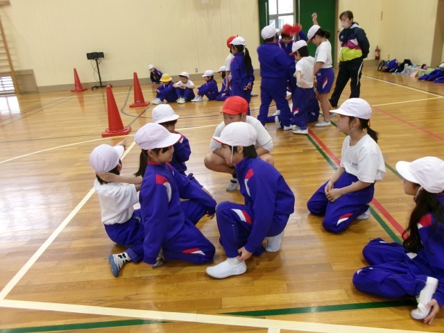 を決めます。みんな丸くなって相談です。低学年でも仲良く話し合うことができるんですね。関心しました。