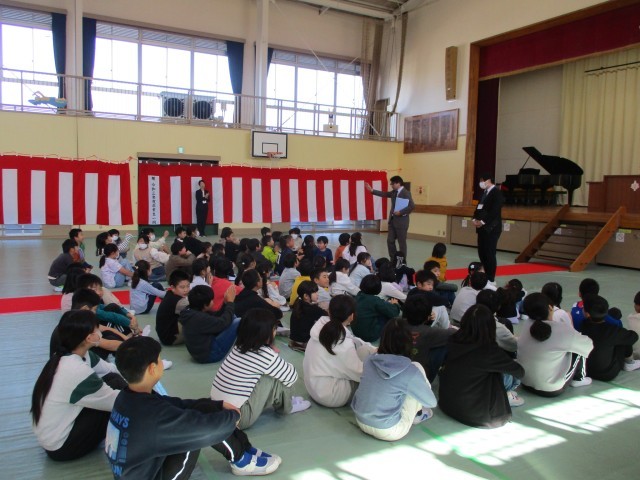 さっそく体育館に集まり、新しく山王小にいらっしゃった先生方や今年度の担任の先生にご挨拶です。
