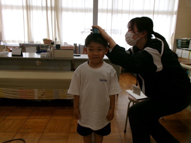 今日は身体測定がありました。保健室の先生のお話をしっかり聞いて、体重と身長を測ることができました。