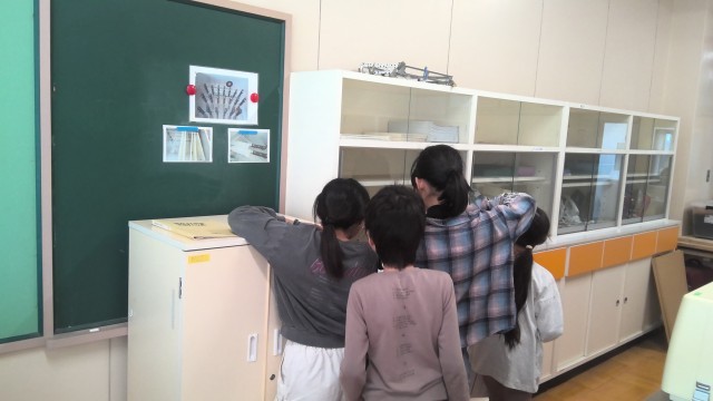 家庭科室を見ていて、「包丁は厳重にしまわれている」ということに気づく児童もいました。