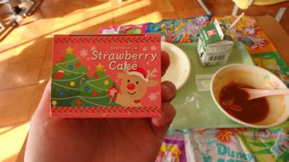 みんなで、おいしい! イチゴのクリスマスケーキを食べました。