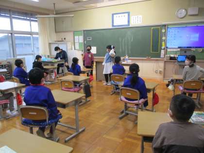 2・3年生 今日から始まりました。 公開日 2022/01/11 更新日 2022/01/11 3年生 冬休みが終わり、今日から学校が始まりました。 朝、オンラインで校長先生のお話を静かに聞き、 朝の会を行いました。 元気よく2・3年生の挨拶ができました。