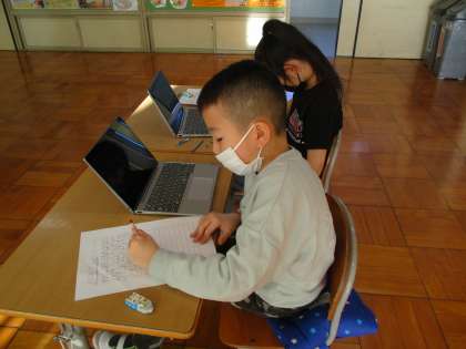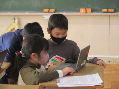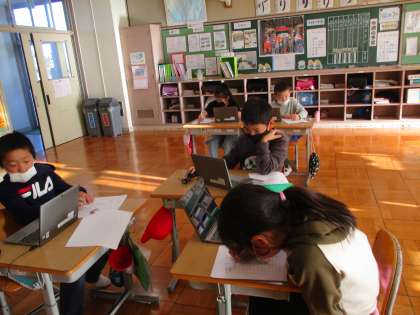 調べ学習の様子です。 今日は、取手にある八坂神社と取手のグルメについて タブレットを使って調べました。