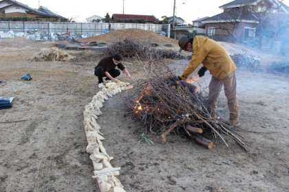 今日は「野焼き」 もうはじまってます! 公開日 2022/01/18 更新日 2022/01/18 小規模特認校 取手アートプロジェクト(TAP)さんとのコラボ授業 「大地からはじまること」の今年度最後の授業が行われます。 これまで取り組んできた 粘土の成形、薪割りをへて、今日は作品を野焼きします。 朝早くから、TAPのスタッフさんが、火入れをして 準備が進んでいます。 今からワクワク、楽しみです。