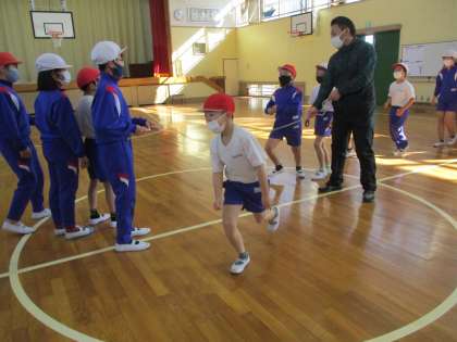 大縄跳びの記録に挑戦しているところです。