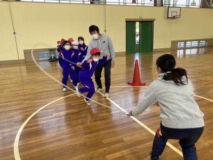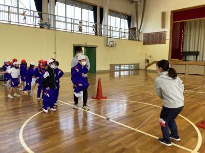体育では1・2年生、なわとびタイムでは縦割り班で、