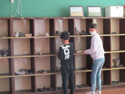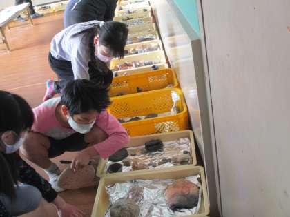 4年生 休憩時間に 公開日 2022/01/20 更新日 2022/01/20 4年生 「大地からはじまること」の活動で制作した 自分の作品を棚に飾りました。 「あーこれ私の!」と 嬉しそうに手にして見ていました。 友達の作品を鑑賞し賞賛するくらい、芸術作品がたくさんできました。