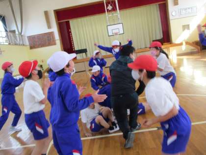 3・4年生 体育 公開日 2022/01/21 更新日 2022/01/21 3年生 全員、本気で大縄跳びに挑戦しました。 記録更新!です。 新記録に、大喜びをしている様子です。 この次は、もっともっと記録を伸ばします。