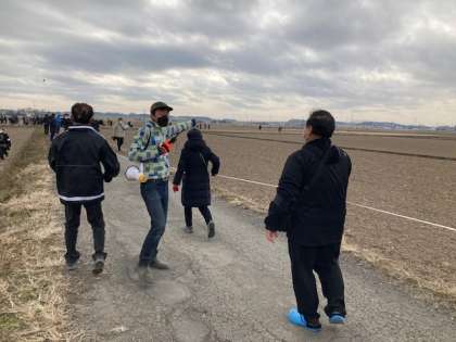 「もうすぐ、凧をあげますよ。一斉に走ってくださいね!」