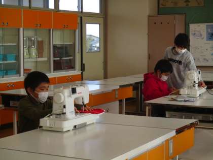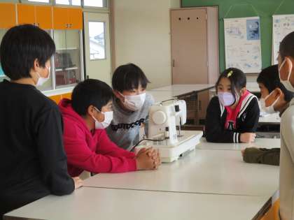 ミシンを使う準備の仕方を練習し、いよいよ布を縫い始めます。