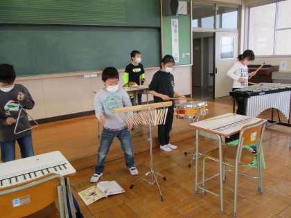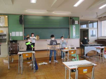 3年生 音楽 公開日 2022/03/03 更新日 2022/03/03 3年生 「おかしのすきなまほう使い」での 魔法の音作りをしている様子です。 打楽器を中心にいろいろな音作りや、 リズム作りをして楽しくアンサンブルをしました。