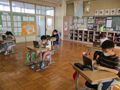 3年生 国語 公開日 2022/03/16 更新日 2022/03/16 3年生 タブレットPCを使って、タイピングに挑戦しています。 タイムを競っての真剣勝負です。 「やったー新記録!」と、大喜びしています。