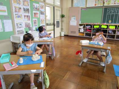 粘土をこねたり、丸めたり、つまんだり、伸ばしたり、