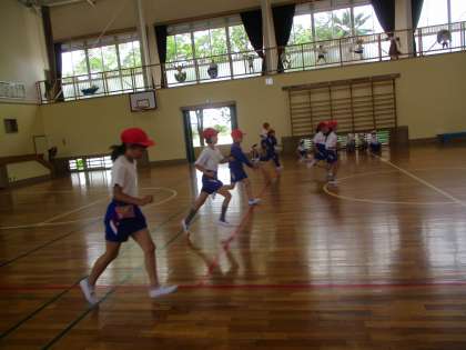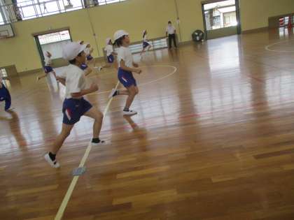 3・4年生 体育 シャトルラン」 公開日 2022/06/03 更新日 2022/06/03 3年生 シャトルランの記録を計りました。 記録を更新するこつを教えていただいた後に計ると、 以前より記録更新できた子供たちが続出。 「やったー!」と子供たちは大喜びでした。