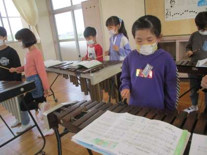 複式3・4年生 音楽 「ゆかいな木きん」 公開日 2022/06/08 更新日 2022/06/08 3年生 「ゆかいな木きん」の アンサンブルの練習をしているところです。 木琴と鉄琴の練習をパート別に行い合わせました。 音色のことなる楽器のうつくしさを感じながら、 子供たちの演奏も盛り上がっていきました。 次回はさらに楽器を増やしたいと思います。