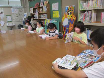 3年生 図書室で(読書にふける) 公開日 2022/07/13 更新日 2022/07/13 3年生 夏休み前の特別貸し出しを利用するために 図書室へ行きました。 夏休み期間は、ひとり5冊まで借りることができます。 読んでみたいと思う本を借り、早速図書室で読書をしました。 手に取って、読んでみたいと思う本との出逢い。 やはり、よいものですね。