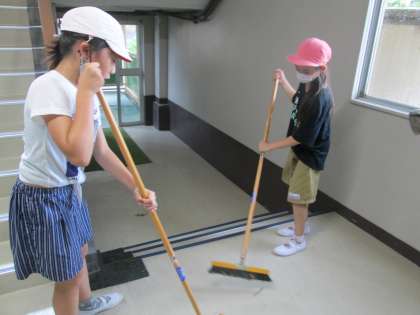 4年生 今日は大掃除パート2 公開日 2022/07/13 更新日 2022/07/13 4年生 みんな一生懸命に心を込めてお掃除をしました。 ほうきではいた後は、この2人は、 雑巾をもち、長〜い廊下を、ひたすら拭き掃除をしました。 しかも、笑顔で! ここが、4年生のすばらしいところです! ありがとう!