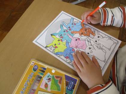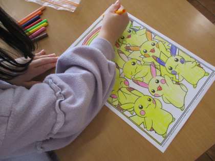 大好きなポケモンの塗り絵をしているところです。