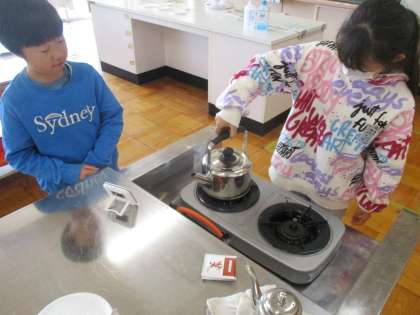 お茶入れから調理へ、安全に気を付けながら、