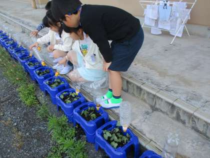 1年 生活科 アサガオ日記 公開日 2023/05/10 更新日 2023/05/10 1年生 たった一日だというのに、こんなに大きくなりました。 「はやいはやい、大きくなるの!」 「もっとおおきくなるように水をかけてあげるの」と、 朝から元気いっぱいです。 1年生も、毎日、立派に大きくなっていますよ。