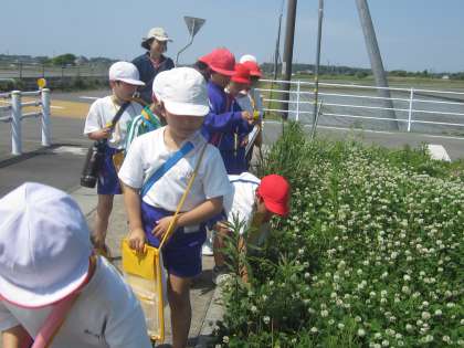天気がよく晴れた今日は、町たんけんに行きました。