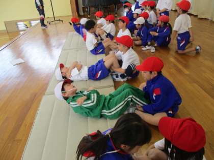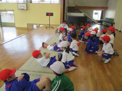 1・2年生 体育 「長座体前屈」 公開日 2023/05/14 更新日 2023/05/14 1年生 今日は、体力テストの種目のひとつ、 長座体前屈(ちょうざ たいぜんくつ)の測定を行いました。 2年生が、はじめての1年生に測定の仕方を教えて 面倒を見てくれました。 とても頼もしく思えました。 2年生のみんな、ありがとうございました。