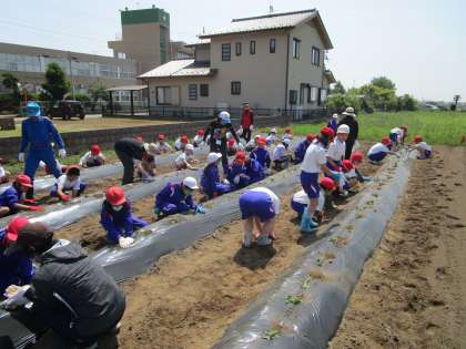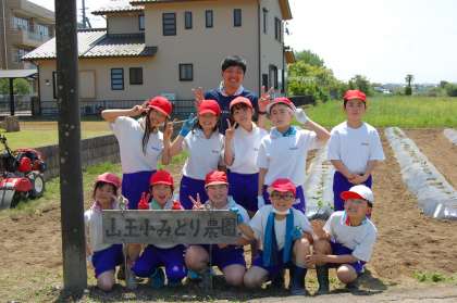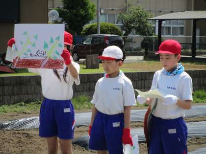 山王小みどり農園(サツマイモ畑)の開園式を行いました。