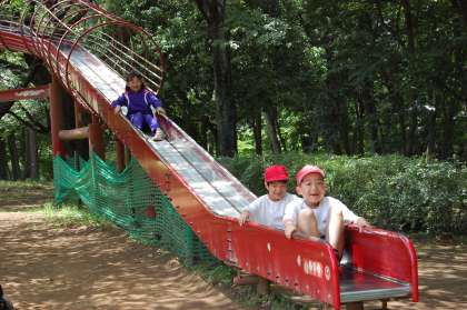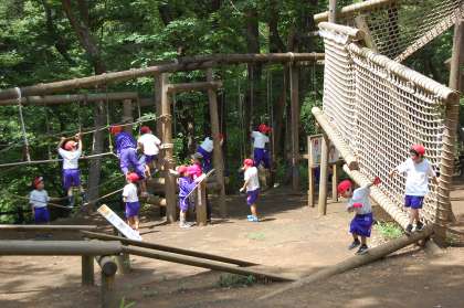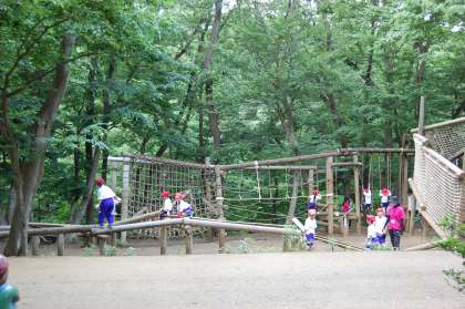 さあ、午後は、いよいよアスレチックに挑戦。木登りをしたり、滑り台で遊んだりと大忙しでした。