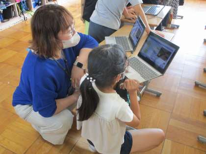 プログラミングにもだいぶ慣れてきて、他のキャラクターに変えたり、数字を変えたりして様々に試しながら、できたプログラムを友達と見せ合い、楽しんでいました。