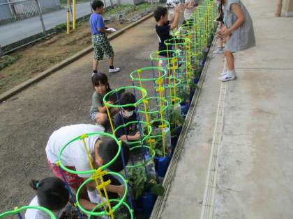1年生 生活科 つるの観察 公開日 2024/06/12 更新日 2024/06/12 1年生 あさがおが育ってきて花が咲き始めました。 今日は、つるの様子を観察しました。 くるくると支柱の上まで伸びているつるもあれば、何本も支柱の真ん中で巻き付いているものもありました。 あさがおにも子供たちと同じように個性があるようです。