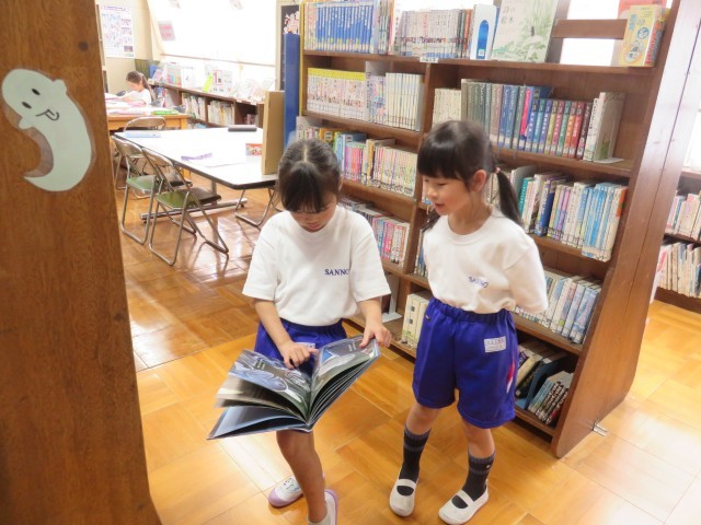 図書室の先生に、図書室の使い方を教えてもらったあとは読み聞かせです。