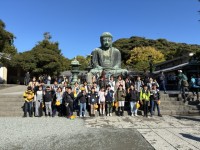 鎌倉の大仏さまを背景に集合写真をパシャリ。この後、いよいよお待ちかねの班別行動で...