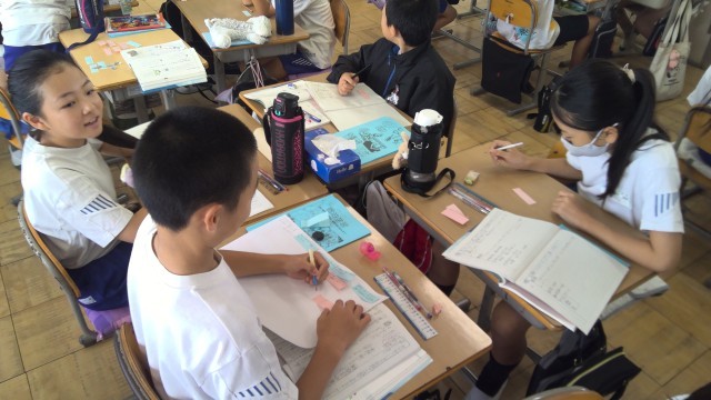 1組は国語「うるさくならないための原因と課題」についてグループで話し合いを行い、2組は「倍数・公倍数・最小公倍数」の学習に取り組みました。