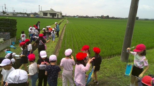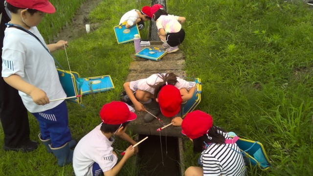 生活科の授業でザリガニ釣りに行った時の写真です。